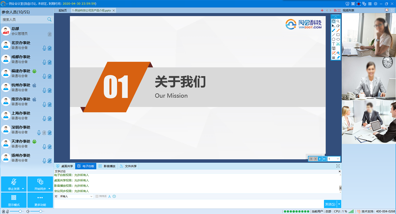 網(wǎng)會科技是中國領(lǐng)先的遠(yuǎn)程視頻會議軟件以及視頻會議系統(tǒng)、網(wǎng)絡(luò)視頻會議全面應(yīng)用解決方案的供應(yīng)商.產(chǎn)品涵蓋軟硬件視頻會議系統(tǒng)、視頻智能錄播系統(tǒng)等 請撥400-004-0268。